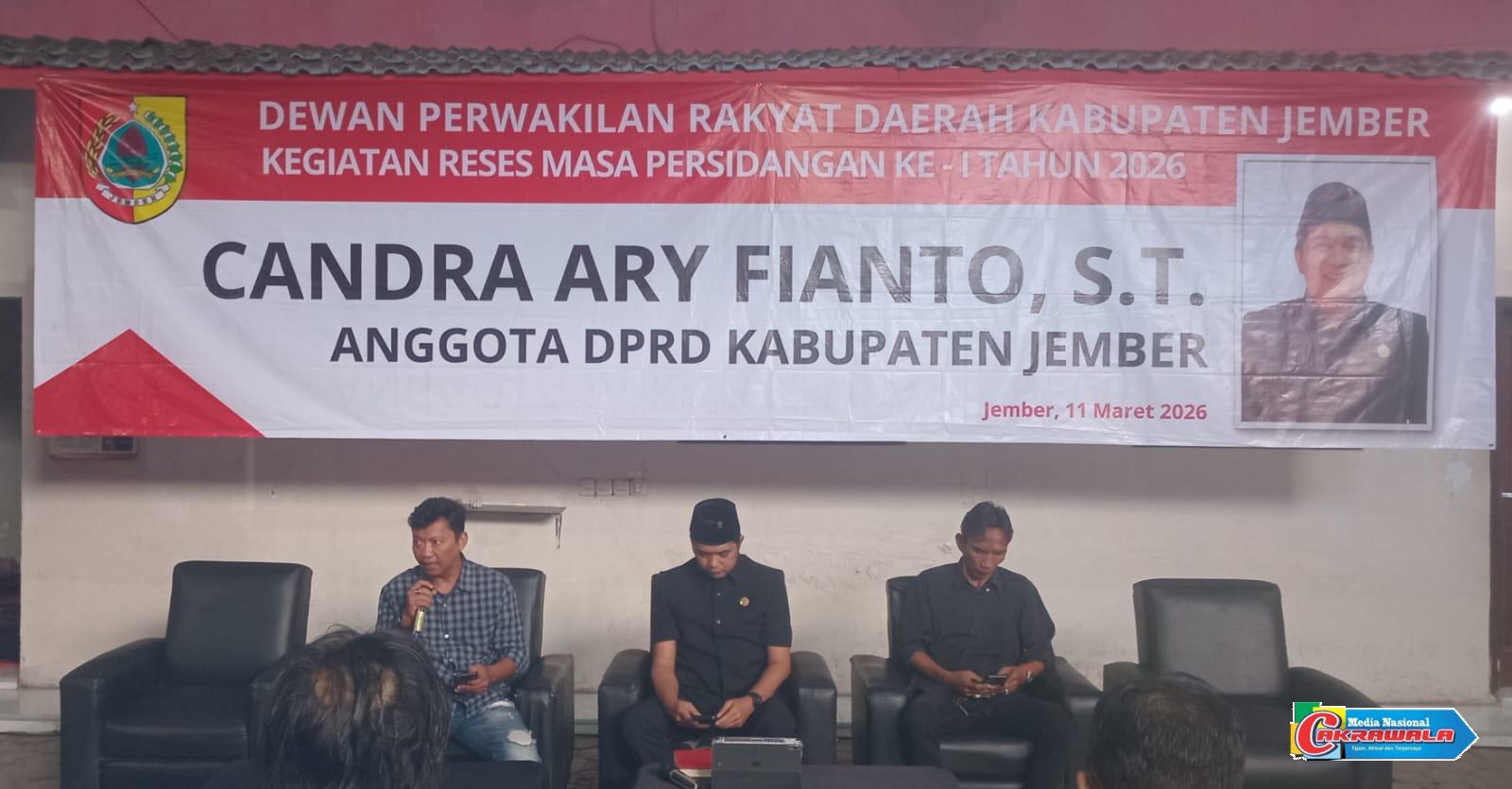 ​JEMBER – MN Cakrawala, Ketua Komisi B DPRD Kabupaten Jember, Candra Ary Fianto, ST., melaksanakan Reses Masa Persidangan Ke-1 Tahun 2026 di Kecamatan Kalisat pada Rabu (11/03/2026). Dalam forum serap aspirasi tersebut, Candra memaparkan analisis mendalam mengenai korelasi antara konflik internasional dengan kondisi ekonomi di tingkat lokal.
