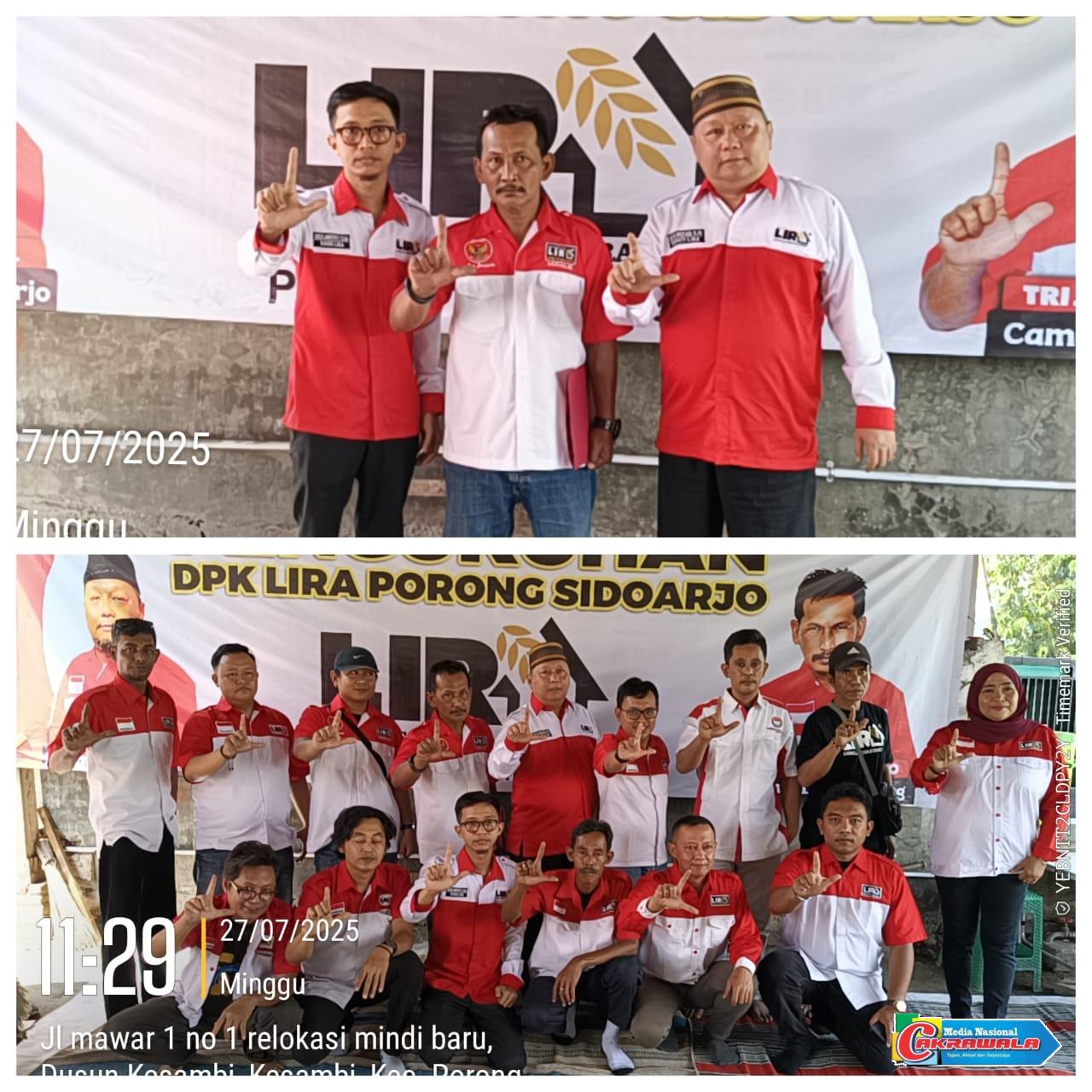 Sidoarjo,Cakrawala-Dewan Pimpinan Kecamatan (DPK) Lumbung Informasi Rakyat (LIRA) Porong resmi dikukuhkan pada Minggu, 27 Juli 2025. Acara pengukuhan berlangsung di Kantor DPK LIRA Porong yang beralamat di Jalan Anggrek No. 16, Relokasi Mindi Baru, Desa Kesambi, Kecamatan Porong.
