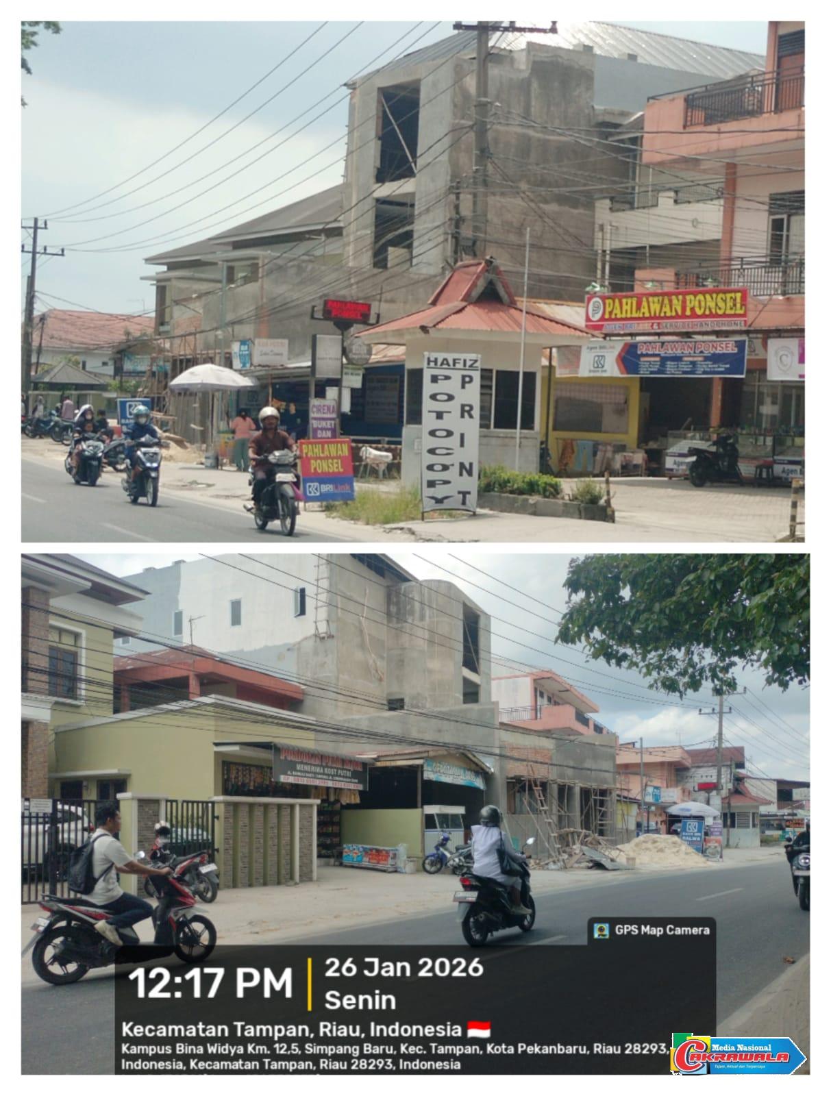 Pekanbaru,Cakrawala-Dugaan pelanggaran Garis Sempadan Bangunan (GSB) dan pembangunan ruko tanpa Persetujuan Bangunan Gedung (PBG) di Jalan Bangau Sakti, Kecamatan Binawidya, kini berubah menjadi potret telanjang lemahnya pengawasan pemerintahan di Kota Pekanbaru.