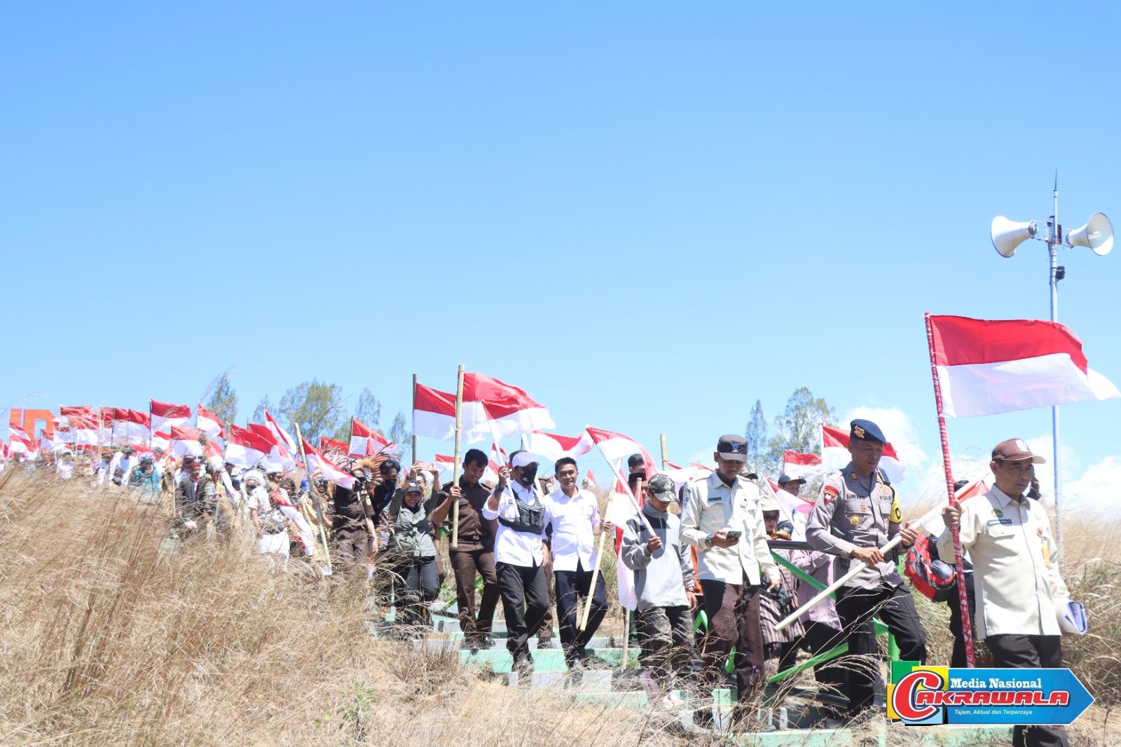BONDOWOSO,MNCakrawala – Menyambut hari Kemerdekaan RI ke – 79 Polres Bondowoso bersama Pemkab Bondowoso mengibarkan bendera merah putih dikawasan wisata Kawah Wurung Kecamatan Ijen Kabupaten Bondowoso.