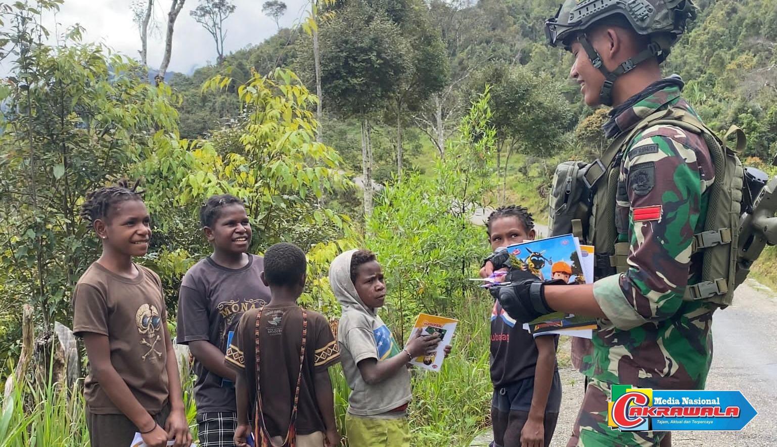 Dalam rangka menciptakan rasa aman di wilayah Intan Jaya, Satgas Yonif 509 Kostrad terus gencar melakukan patroli di berbagai daerah. Pada salah satu patroli terbarunya di Kampung Amisiga, para prajurit tidak hanya fokus pada aspek keamanan, tetapi juga menunjukkan kepedulian sosial mereka dengan membagikan alat tulis kepada anak-anak setempat. Sabtu (13/07/2024)