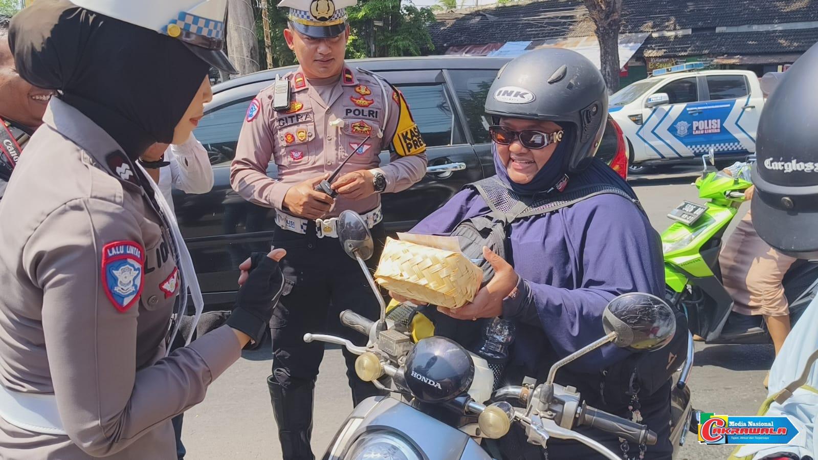 Satlantas Polres Bondowoso melaksanakan Operasi Patuh Semeru 2025 dengan Bagikan Besek Tape