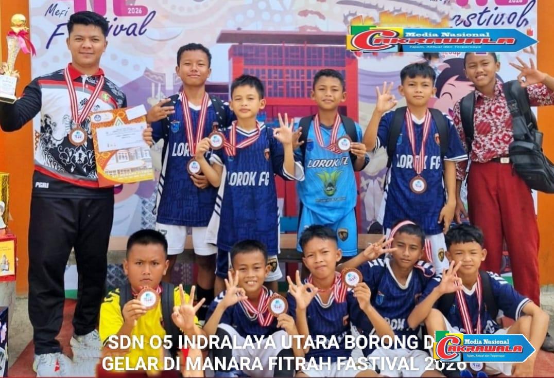 MNCAKRAWALA – Ogan Ilir,SD Negeri 05 Indralaya Utara menorehkan prestasi dalam ajang Menara Fitrah Festival 2026 yang digelar di Sekolah Islam Terpadu (SIT) Menara Fitrah Indralaya Utara kab.ogan ilir- pada tanggal 2–4 Februari 2026. Kamis (5/2/26), sekolah ini meraih juara dua lomba Senam Ceria Anak Indonesia dan juara tiga cabang futsal tingkat sekolah dasar.