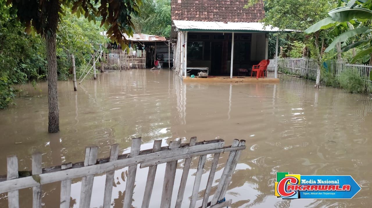 Pemandangan genangan air kiriman di desa Gelung ini terjadi hampir setiap tahun di saat musim penghujan.