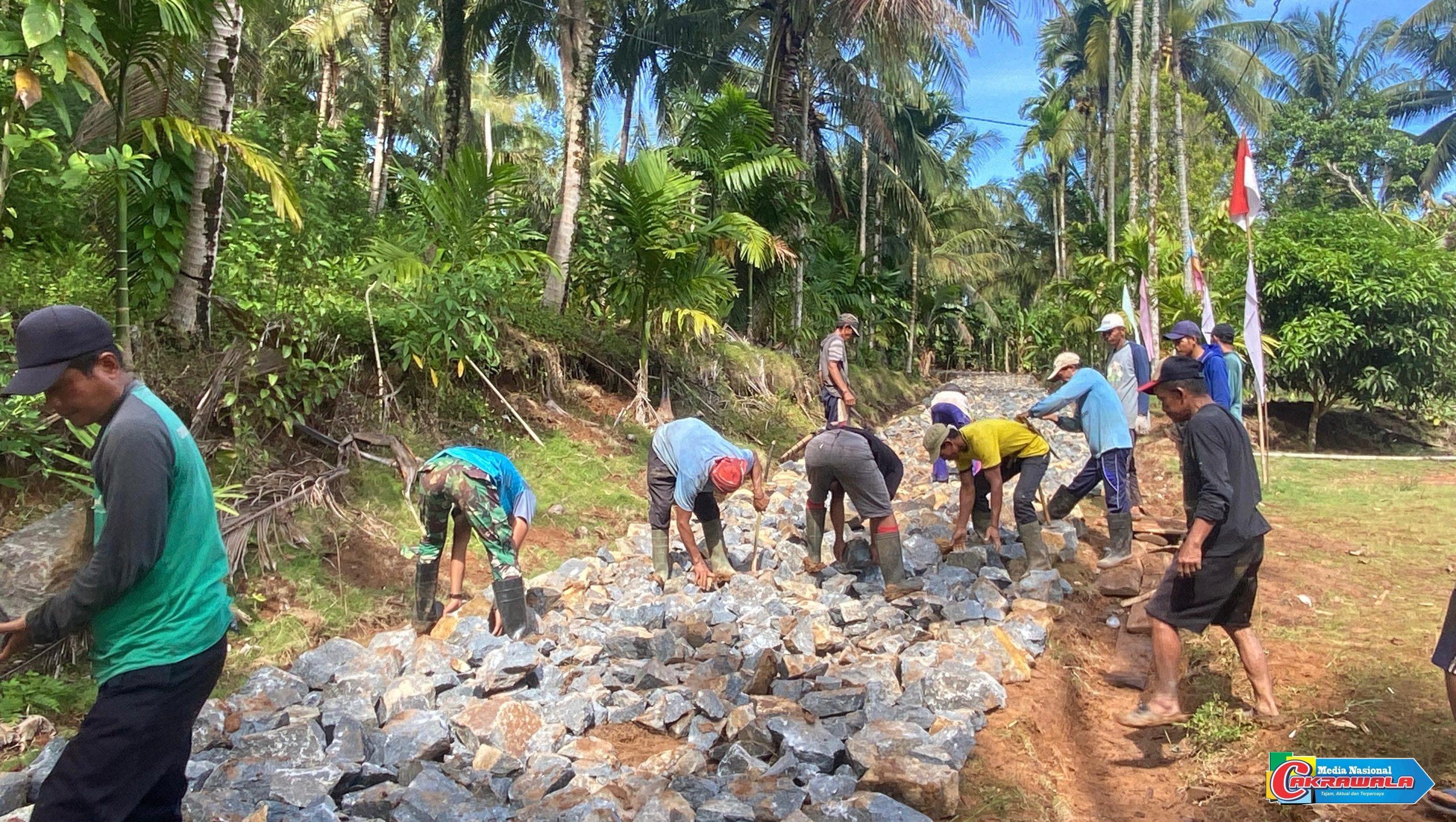 Pesisir Barat,Cakrawala– Semangat kebersamaan dan gotong royong antara masyarakat dan Satgas TMMD ke-124 Kodim 0422/Lampung Barat terlihat jelas dalam kegiatan pemecahan batu untuk pembangunan badan jalan onderlagh di Pekon Pemerihan, Kecamatan Bangkunat, Sabtu 17-05-2025.