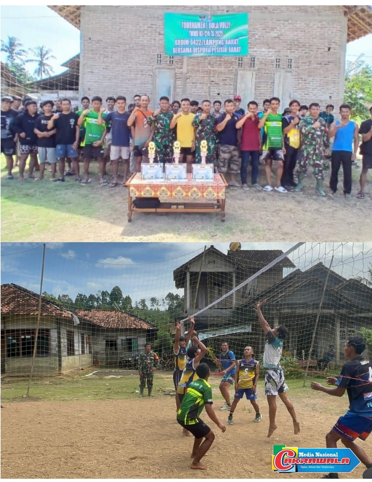 Pekon Pemerihan,Cakrawala-02 Juni 2025, Program TNI Manunggal Membangun Desa (TMMD) ke-124, dalam rangka mempererat tali silaturahmi dan menumbuhkan semangat kebersamaan antara TNI dan masyarakat, Kodim 0422/Lampung Barat menggelar turnamen bola voli di Pekon Pemerihan, Kecamatan Bengkunat. Kegiatan ini merupakan bagian dari program TNI Manunggal Membangun Desa (TMMD) ke-124 yang tengah berlangsung di wilayah tersebut.