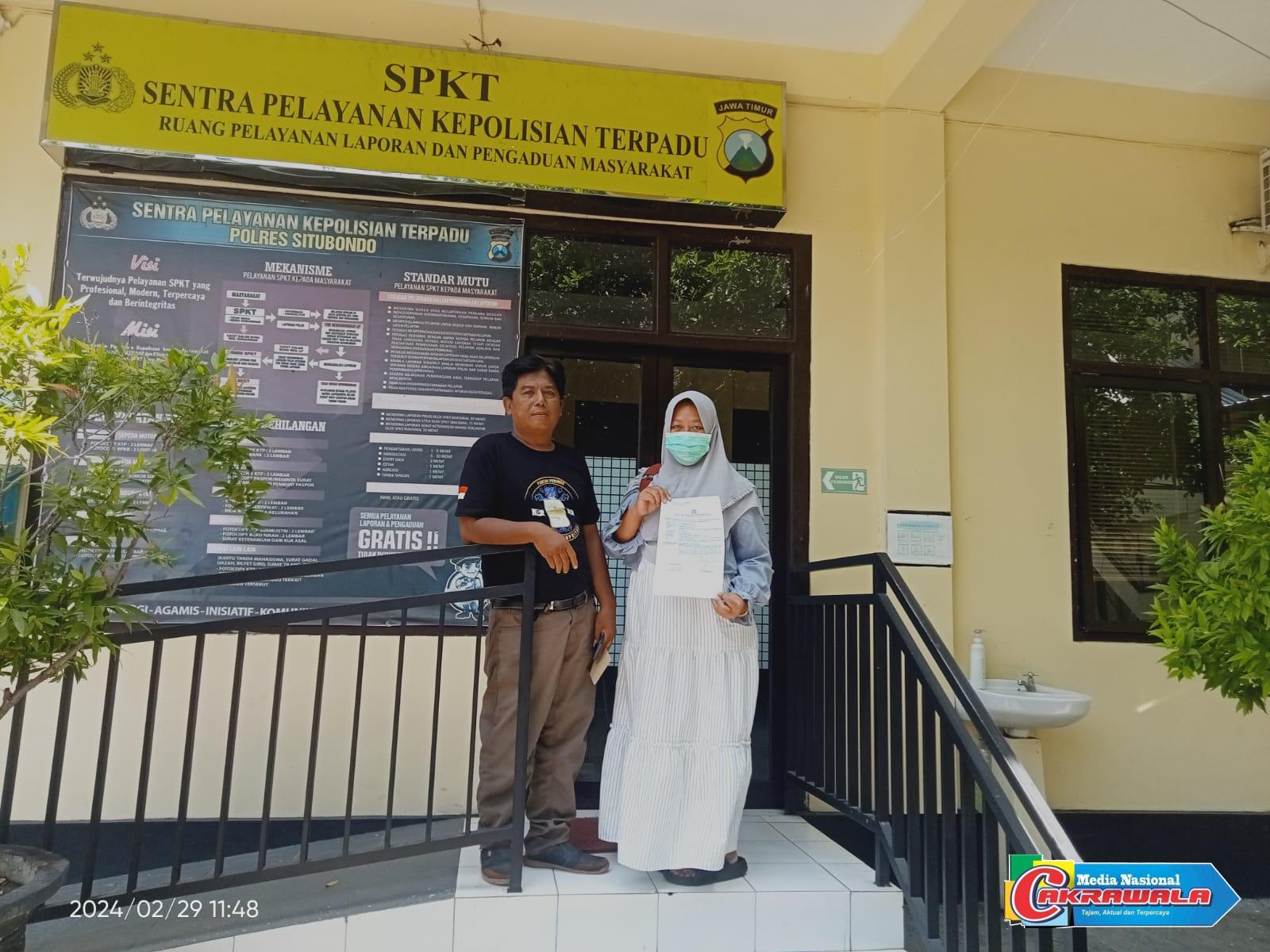 Situbondo,MNCakrawala-Seorang Ibu Rumah Tangga, warga Desa Lugundang RT. 02 RW. 05 Talkandang Kecamatan Situbondo Kabupaten Situbondo, Jawa Timur, mendatangi mapolres Situbondo Kamis, (29/1/2024).