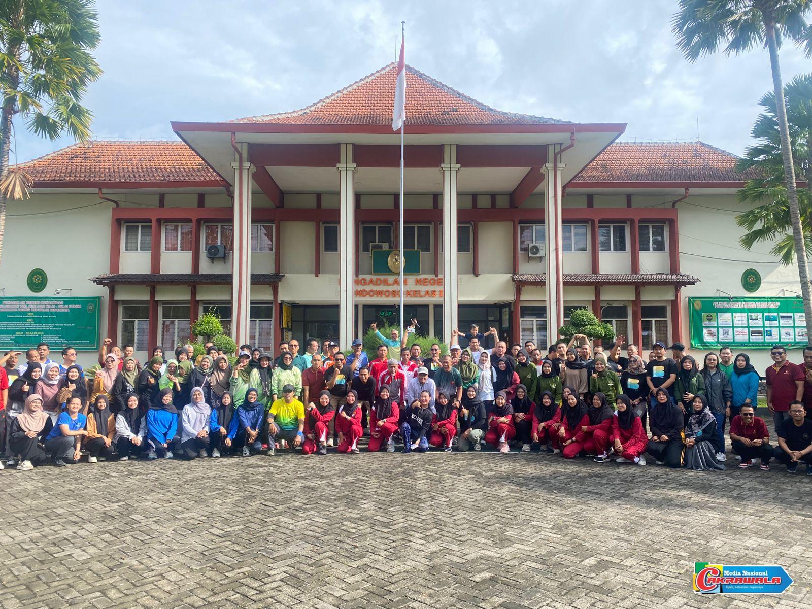 Bondowoso,Cakrawala-Suasana penuh keakraban tampak mewarnai kegiatan Senam Bersama Satuan Kerja (Satker) yang digelar di Halaman Pengadilan Negeri Bondowoso pada Jumat, 14 November 2025. Kegiatan yang dimulai pukul 07.00 hingga 08.20 WIB ini diikuti sekitar 100 peserta dari berbagai instansi, sebagai wujud sinergi dan kebersamaan antar lembaga di Kabupaten Bondowoso. Kodim 0822 turut hadir melalui perwakilannya, Lettu Inf Saful Makhin, yang mewakili Komandan Kodim 0822.
