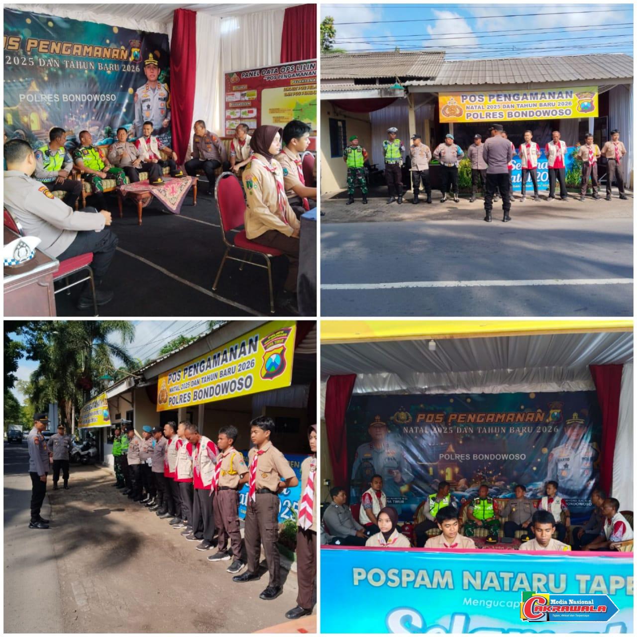 Bondowoso,Cakrawala – Dalam rangka memberikan rasa aman dan nyaman kepada masyarakat selama perayaan Natal 2025 dan Tahun Baru 2026, jajaran TNI, Polri, serta instansi terkait melaksanakan Apel Serah Terima Pos Pengamanan dan Pos Pelayanan Operasi Lilin Semeru 2025, Kamis (25/12/2025). Kegiatan tersebut berlangsung sejak pukul 08.00 WIB di sejumlah titik strategis wilayah Kabupaten Bondowoso dengan penanggung jawab Kapolres Bondowoso AKBP Harto Agung Cahyono, S.H., S.I.K., M.H.