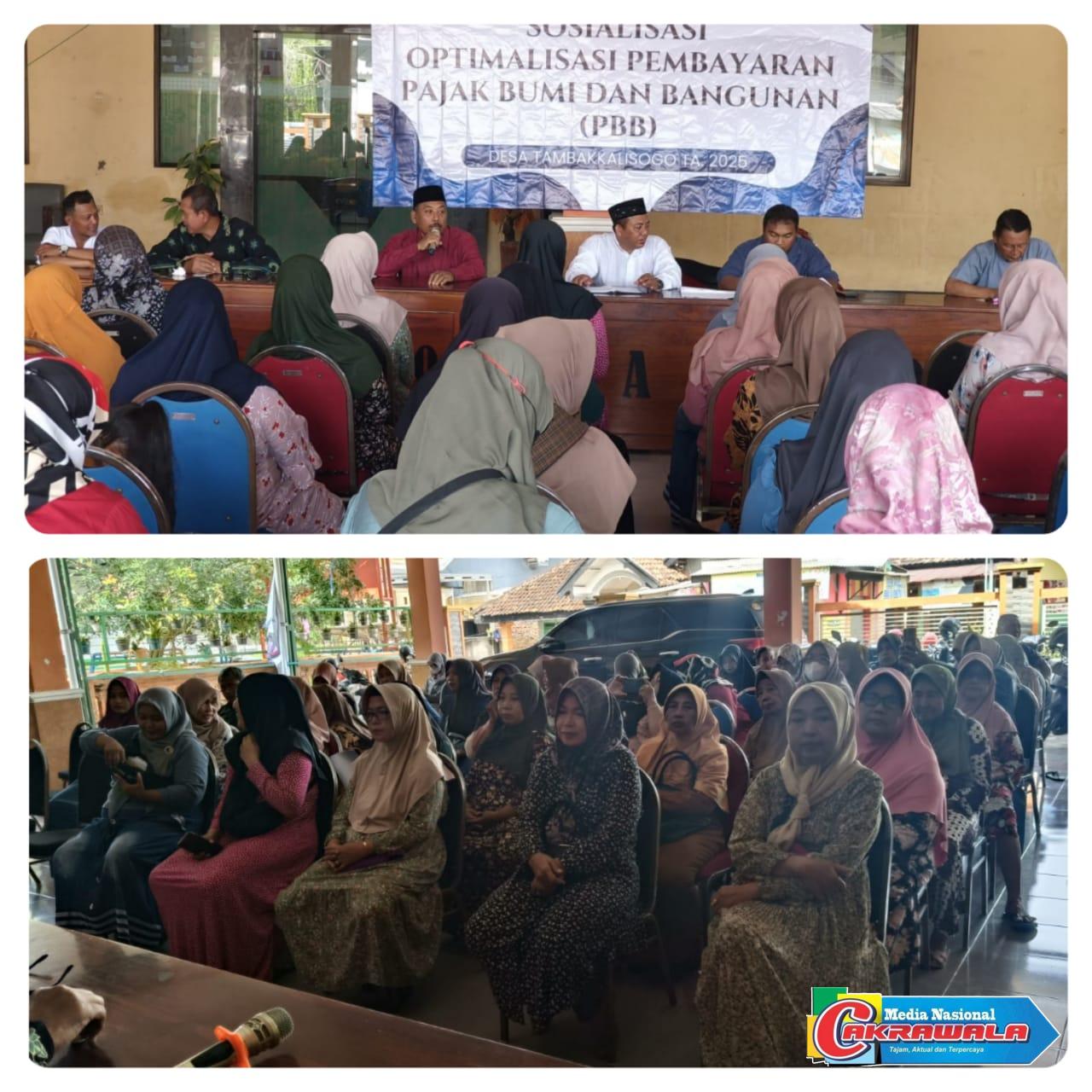 Sidoarjo, MN Cakrawala– Desa Tambak Kalisogo Kecamatan Jabon menyelenggarakan sosialisasi Pajak Bumi dan Bangunan (PBB) yang bertempat di balai desa sekaligus memberikan reward kepada para wajib pajak,atas kesadaran dalam memenuhi kewajibannya, membayar pajak bumi dan bangunan, Jum’at (21/03/2025).