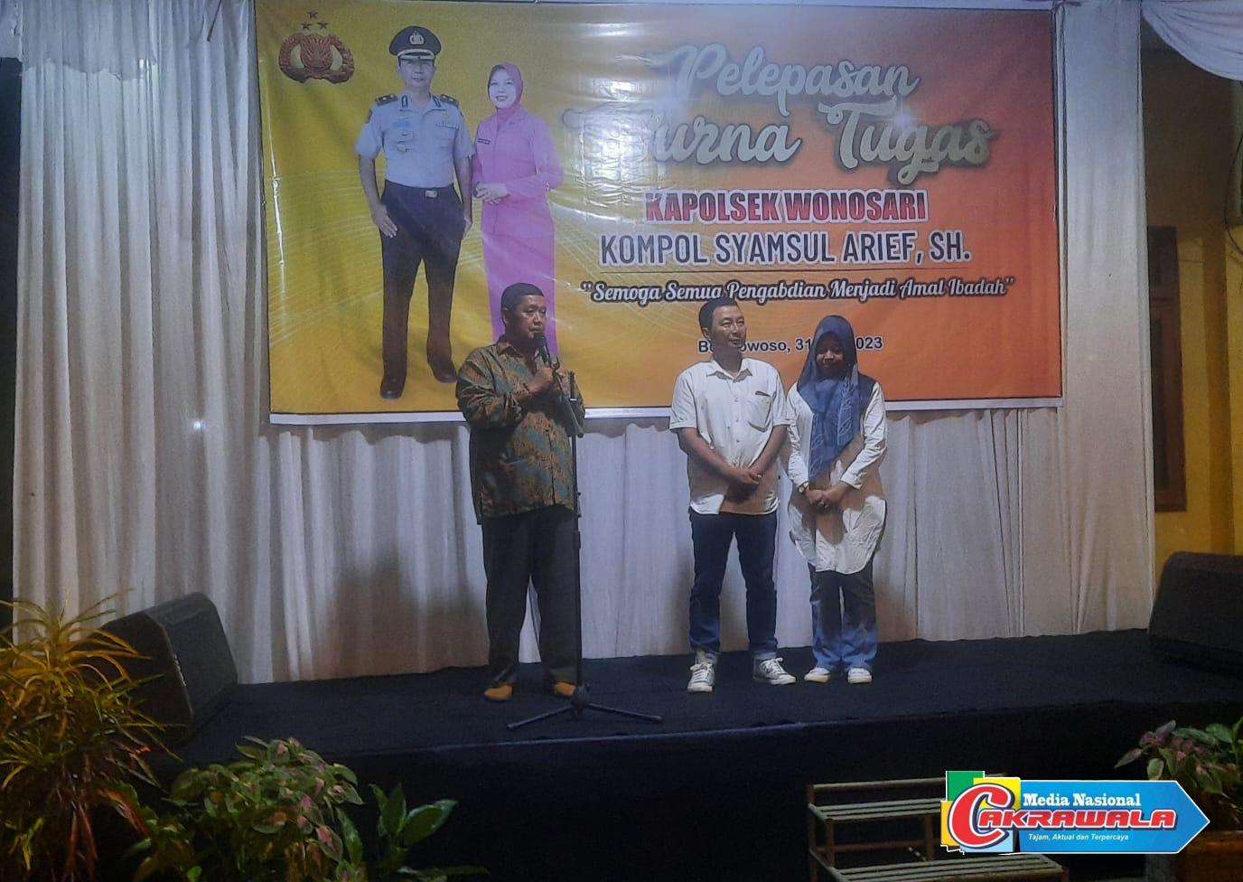 Bondowoso,MNCakrawala-Rabu malam,31 mei 2023 suasana di halaman polsek wonosari nampak ramai dihadiri para tamu undangan dalam rangka pelepasan purna tugas kapolsek wonosari kompol Syamsul Arief,SH.