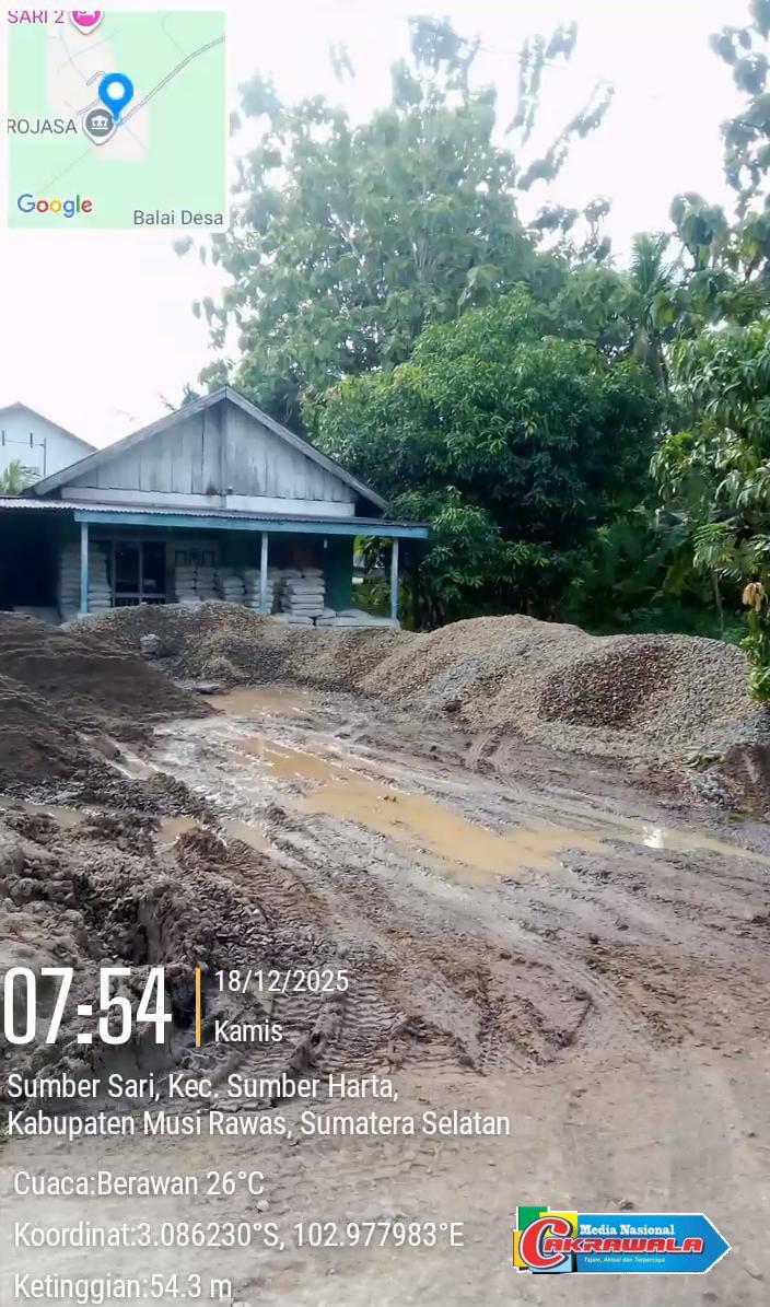Musi Rawas , Media Nasional Cakrawala-Mendekati pengujung tahun anggaran 2025 Proyek Peningkatan Jalan Sumber Harta – U1 – Pagar Sari – Sumber Sari Kecamatan Sumber Harta Kabupaten Musi Rawas belum rampung (belum selesai ) dikerjakan.