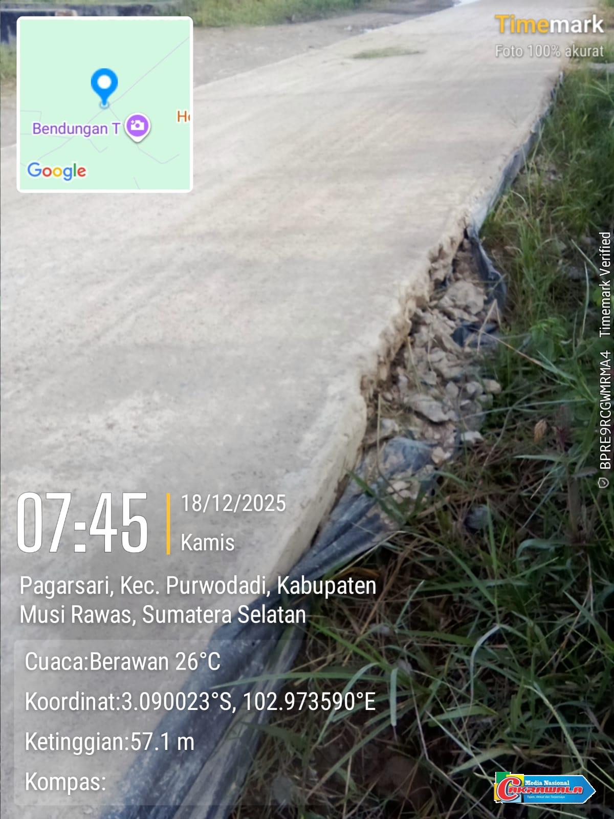 Dan keterangan wawancara Media Nasional Cakrawala dari narasumber masyarakat dilapangan,kualitas pembangunan nya yang diujung kurang optimal pak menyebabkan (keretakan) dibeberapa titik jalan.