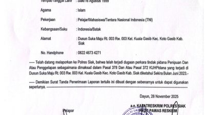 Siak,MN Cakrawala,Upaya konfirmasi kepada Kasat Reskrim Polres Siak terkait perkembangan penanganan STPL tertanggal 28 November…