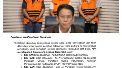 Pekanbaru,Cakrawala – Penahanan yang terus dilakukan Komisi Pemberantasan Korupsi (KPK) terhadap tiga tersangka hasil Operasi…