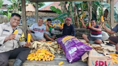 Ogan Ilir-MN Cakrawala,Bhabinkamtibmas Polsek Muara Kuang menghadiri kegiatan panen jagung dalam rangka mendukung program ketahanan…
