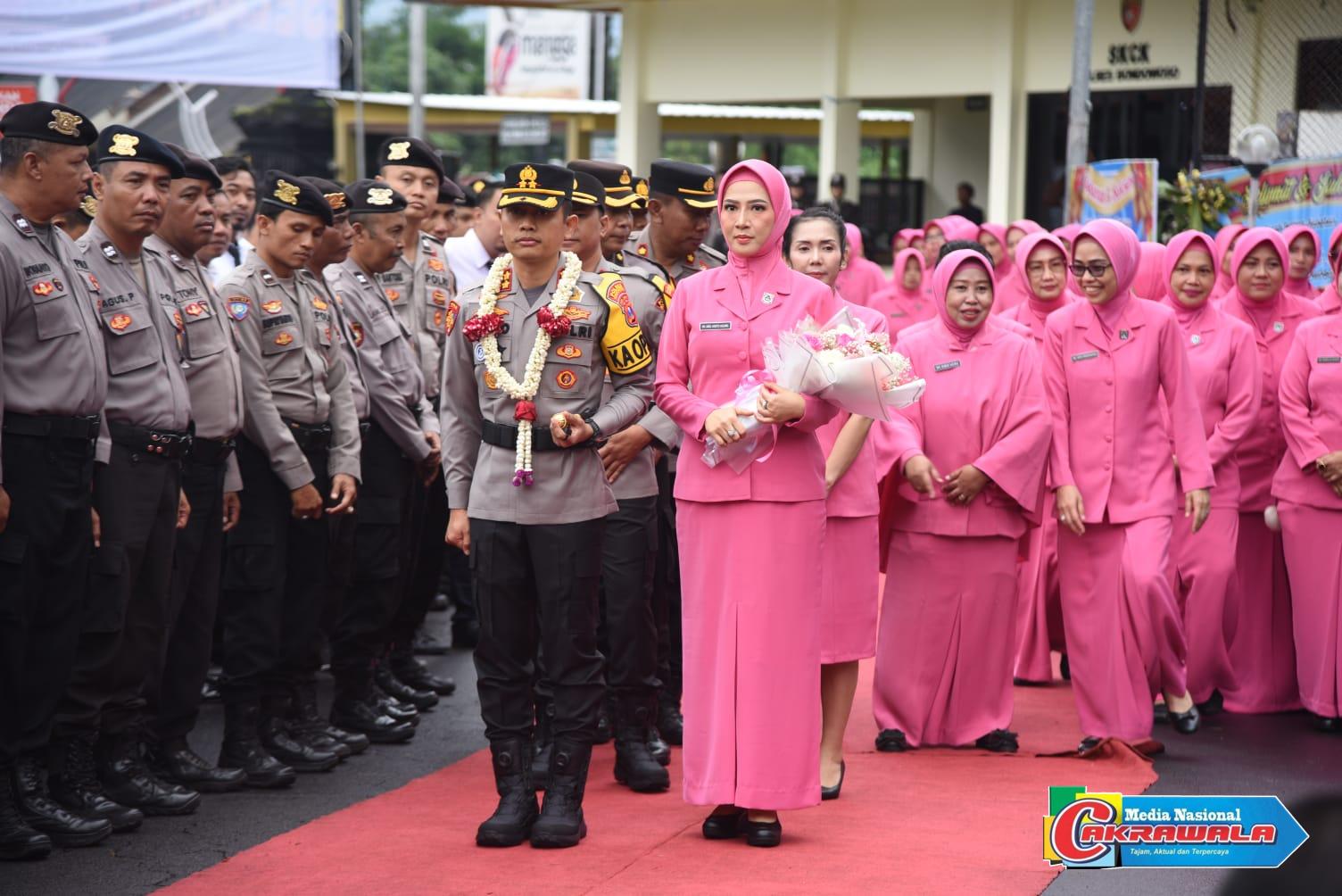 Dalam prosesi tersebut, Kapolres Bondowoso yang baru, AKBP Harto Agung Cahyono beserta istri disambut pejabat utama (PJU) Polres Bondowoso dan jajaran.