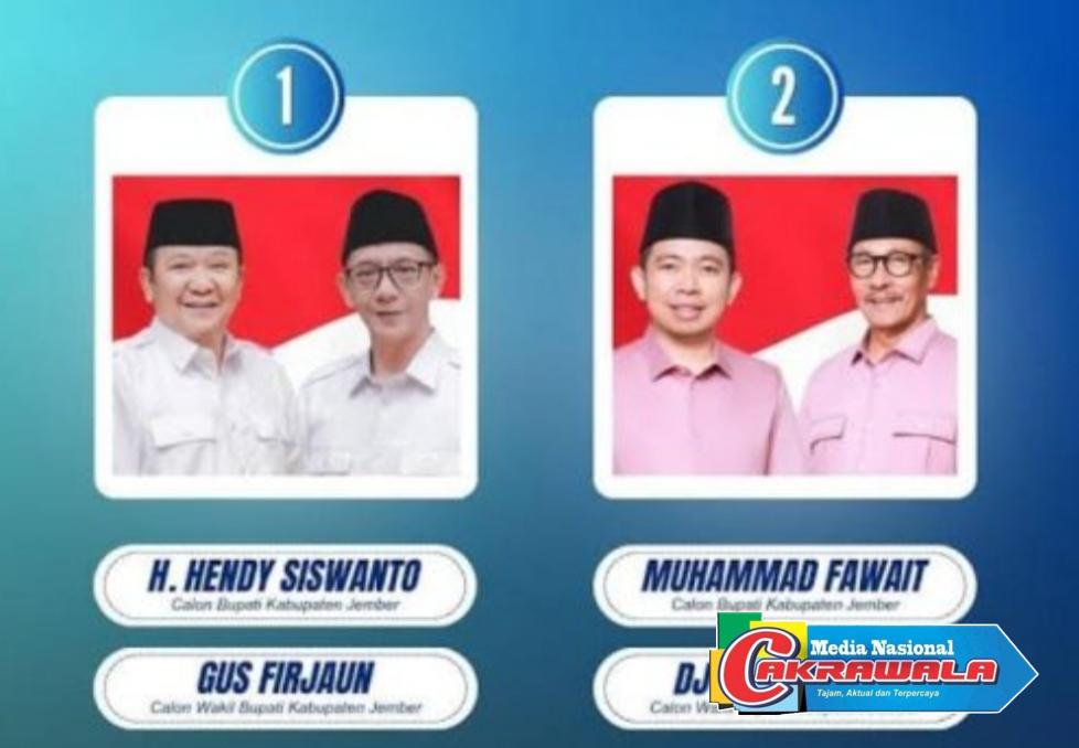 Di Kabupaten Jember ada dua paslon yang akan bertanding memperebutkan kursi untuk menjadi pemimpin Kota tersebut.