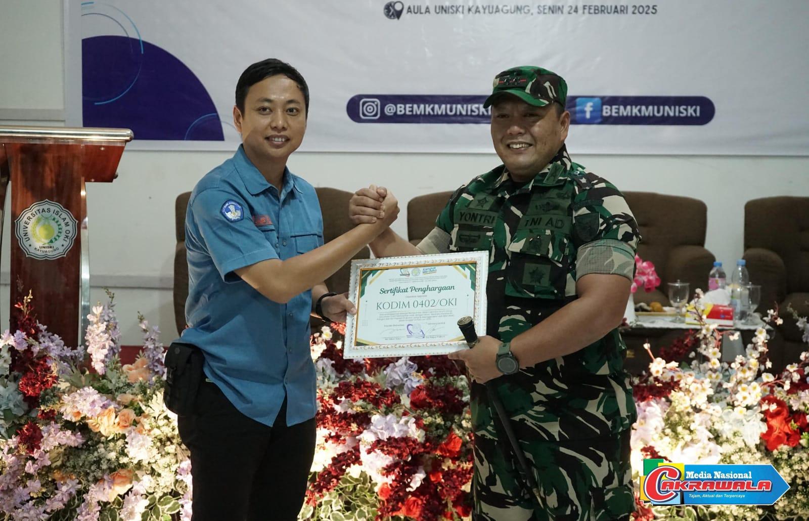 Medianasionalcakrawala.com, OKI — [24/2/2025] – Komandan Distrik Militer 0402/OKI, Letkol Inf Yontri Bhakti,S.H.,M.H menjadi salah satu narasumber dalam Focus Group Discussion (FGD) yang digelar oleh Universitas Islam OKI (Uniski) dengan tema “Meninjau Ketahanan Pangan dari Visi Presiden Prabowo “. FGD ini diadakan di aula Uniski yang dihadiri oleh Rektor Uniski yang diwakili oleh bapak Makaroni ST, perwakilan Distan OKI ibu Lindawati , Gapoktan Celikah serta mahasiswa/i Uniski.