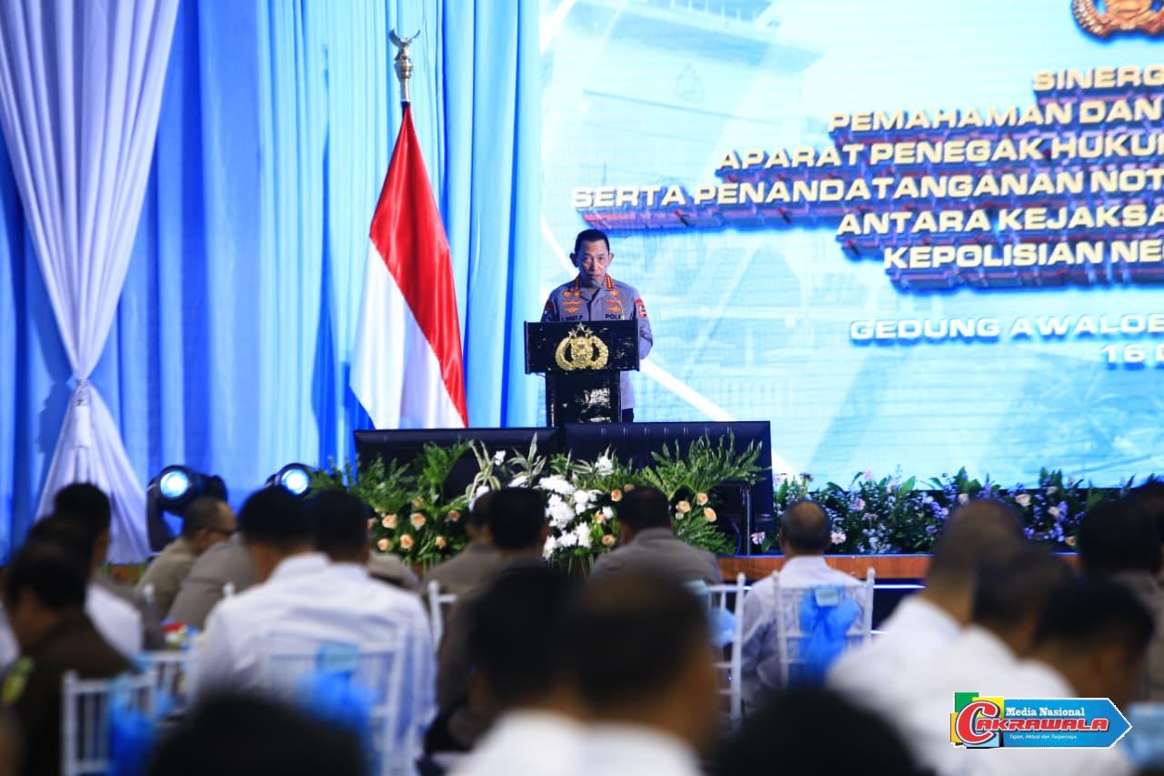 Jakarta , MN Cakrawala-Kepala Kepolisian Negara Republik Indonesia (Kapolri) Jenderal Polisi Listyo Sigit Prabowo menegaskan pentingnya sinergi antarpenegak hukum dalam pelaksanaan Kitab Undang-Undang Hukum Pidana (KUHP) dan Kitab Undang-Undang Hukum Acara Pidana (KUHAP) yang baru. Hal tersebut disampaikan Kapolri dalam kegiatan penandatanganan Nota Kesepahaman (MoU) yang dilanjutkan dengan Perjanjian Kerja Sama (PKS) antara Kepolisian dan Kejaksaan.