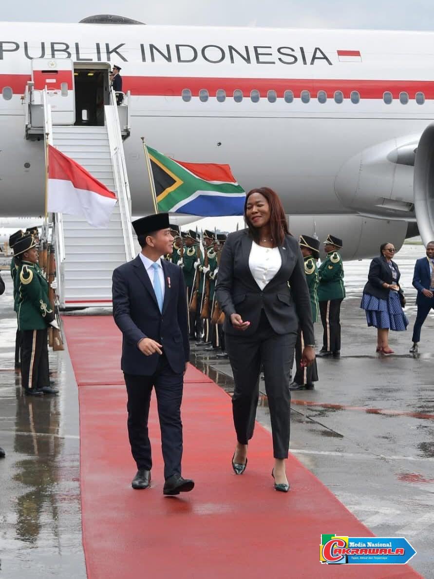 Afirika Selatan,Cakrawala-Wakil Presiden RI Gibran Rakabuming tiba di Bandar Udara Internasional O.R. Tambo, Johannesburg, Afrika Selatan, Jumat (21/11/2025). Setibanya di apron VIP, Wapres disambut hangat dengan Tari Pantsula, tarian tradisional Afrika Selatan.
