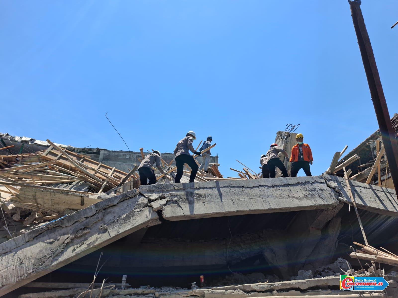 Sejak pagi hingga siang hari, petugas terus bekerja bergantian di area reruntuhan.