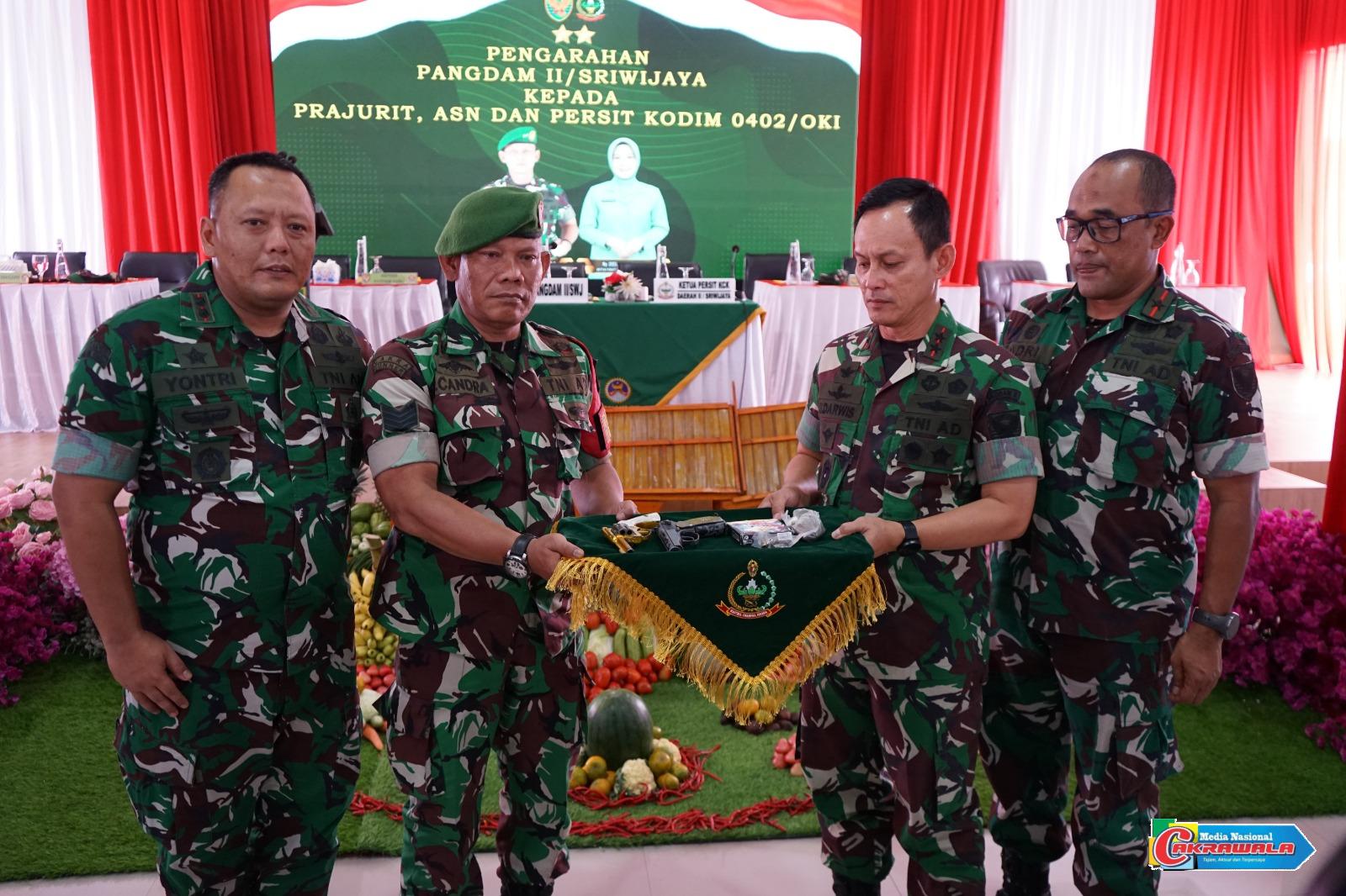 Acara diawali dengan paparan laporan kesiapan dan kegiatan Kodim yang dipaparkan oleh Dandim, kemudian dilanjutkan pengarahan oleh Pangdam II/Sriwijaya kepada prajurit, asn, dan persit Kodim 0402/OKI-OI.
