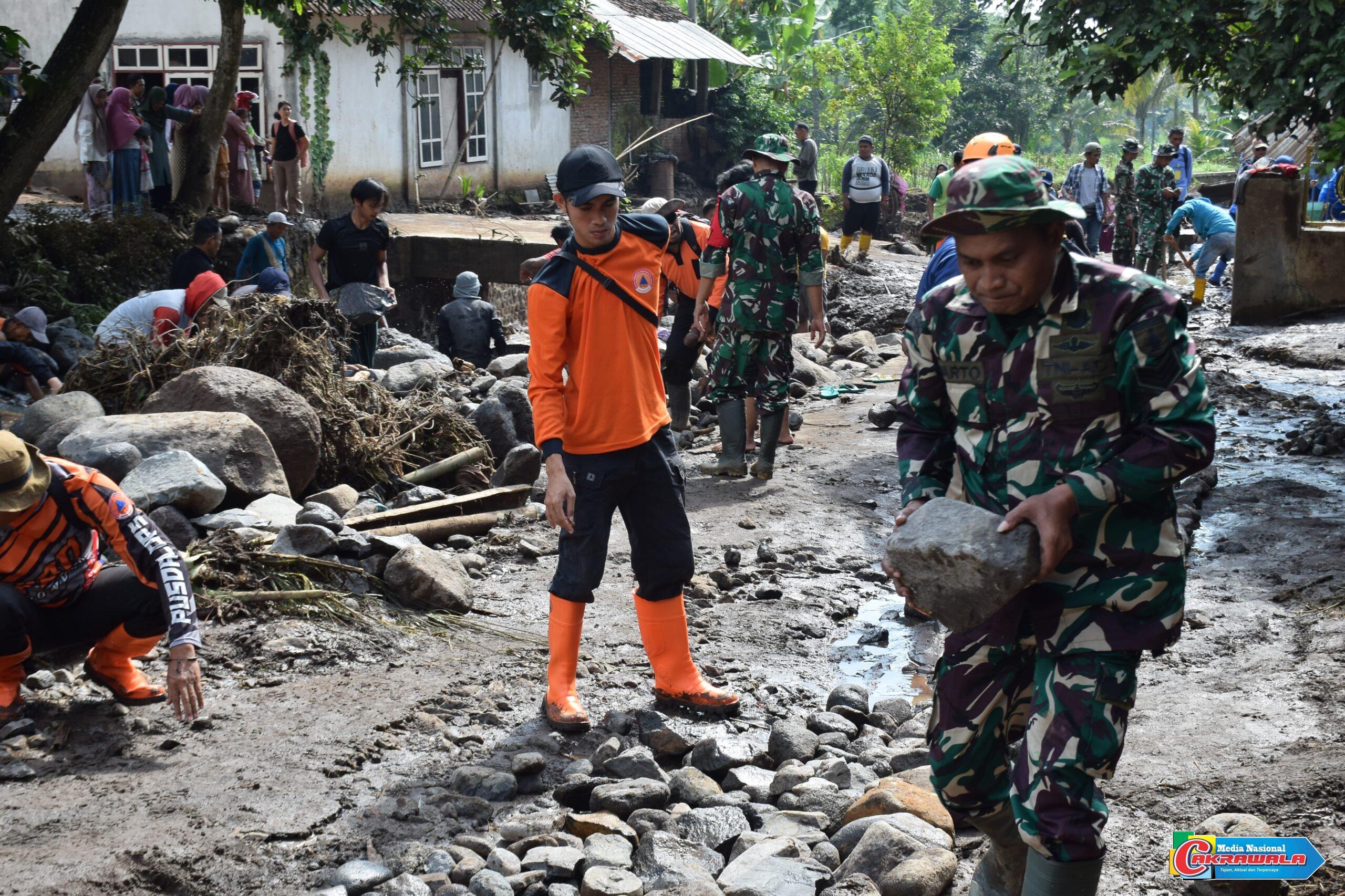 Bondowoso,Cakrawala – Pasca banjir bandang yang melanda Dusun Salak 3, Desa Sumber Salak, Kecamatan Curahdami, Kabupaten Bondowoso, jajaran TNI dari Kodim 0822 melalui Koramil 0822/02 Curahdami langsung bergerak cepat dalam upaya pemulihan. Dipimpin oleh Kapten Arm Yonaidi Desianto, anggota TNI bersama unsur terkait dan masyarakat bahu-membahu membersihkan material lumpur, kayu, serta batu yang menyumbat aliran sungai dan jalan warga, Kamis (13/3).