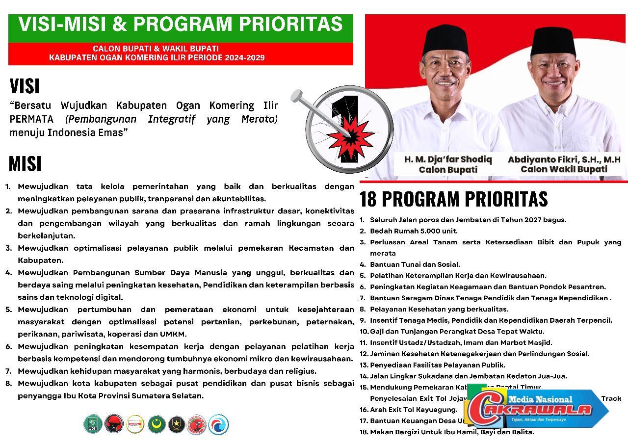 Medianasionalcakrawala.com, OKI — Dalam menjalankan pemerintahan birokrasi yang semakin kompleks, pasangan HM Dja’far Shodiq dan Abdi Yanto SH, MH, (JADI) hadir dengan visi besar yang berakar pada pembangunan yang merata dan berkelanjutan.
