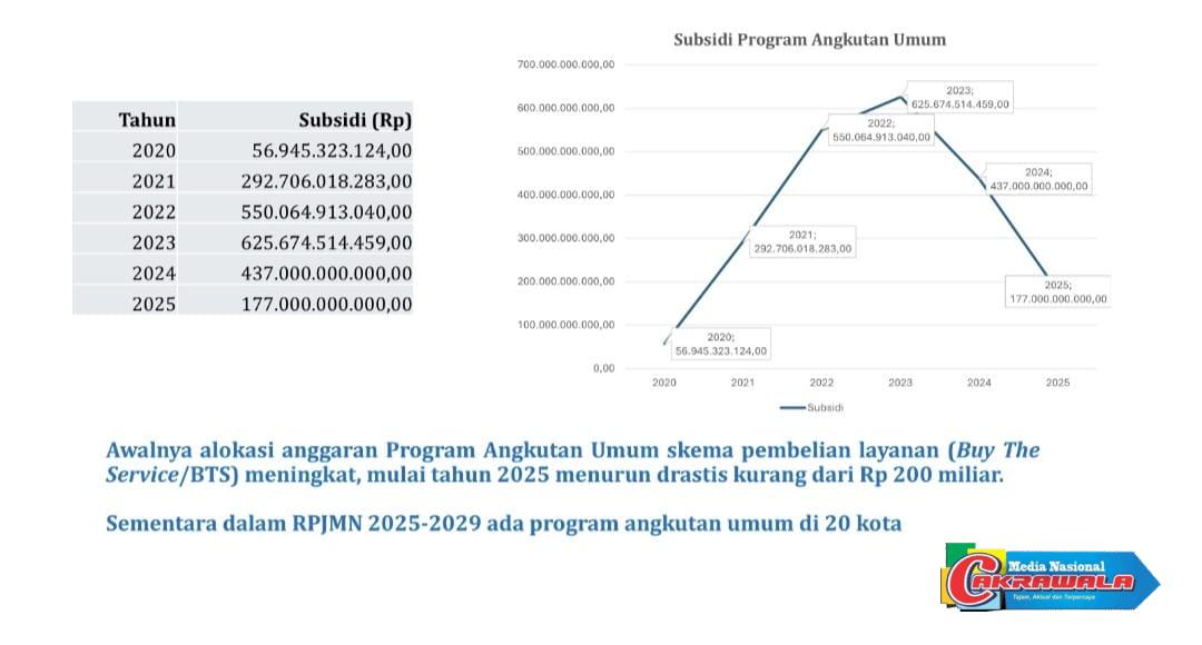 Ini bukan sekadar penurunan, ini sinyal terang: transportasi publik bukan prioritas. Padahal, Presiden Prabowo Subianto dan Wakil Presiden Gibran Rakabuming sudah berjanji memberi subsidi transportasi umum. Kalau janji itu hanya berakhir di spanduk dan baliho, lalu untuk apa rakyat percaya lagi?