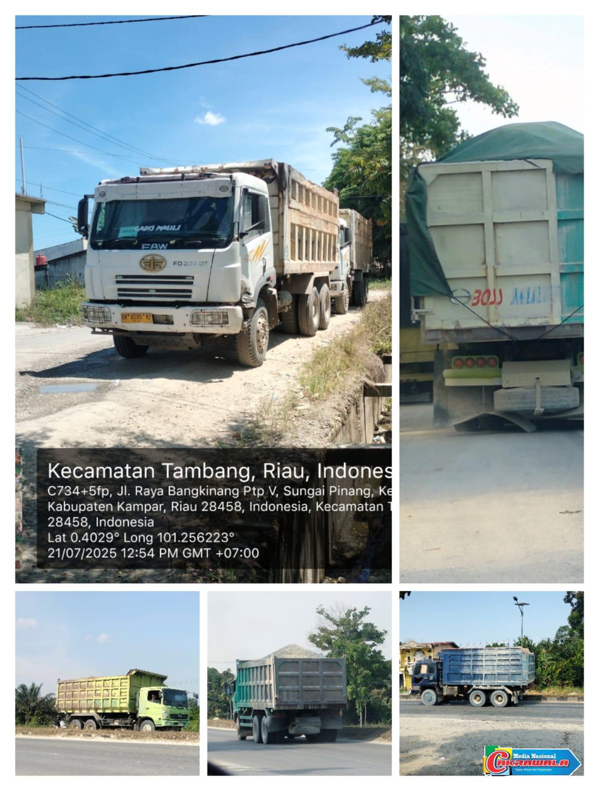 Truk-truk tersebut diketahui merupakan bagian dari vendor pengangkut material untuk pengisian lahan Awi Koro-koro di Desa Rimbo Panjang serta proyek Ruas Tol Pekanbaru–Rengat yang saat ini dikerjakan oleh PT Hutama Karya Infrastruktur (HKI). Meski melanggar aturan dimensi kendaraan dan membahayakan pengguna jalan lain, aktivitas truk ODOL ini terus berlangsung tanpa hambatan, bahkan sering melintas tepat di depan Mapolsek Tambang.