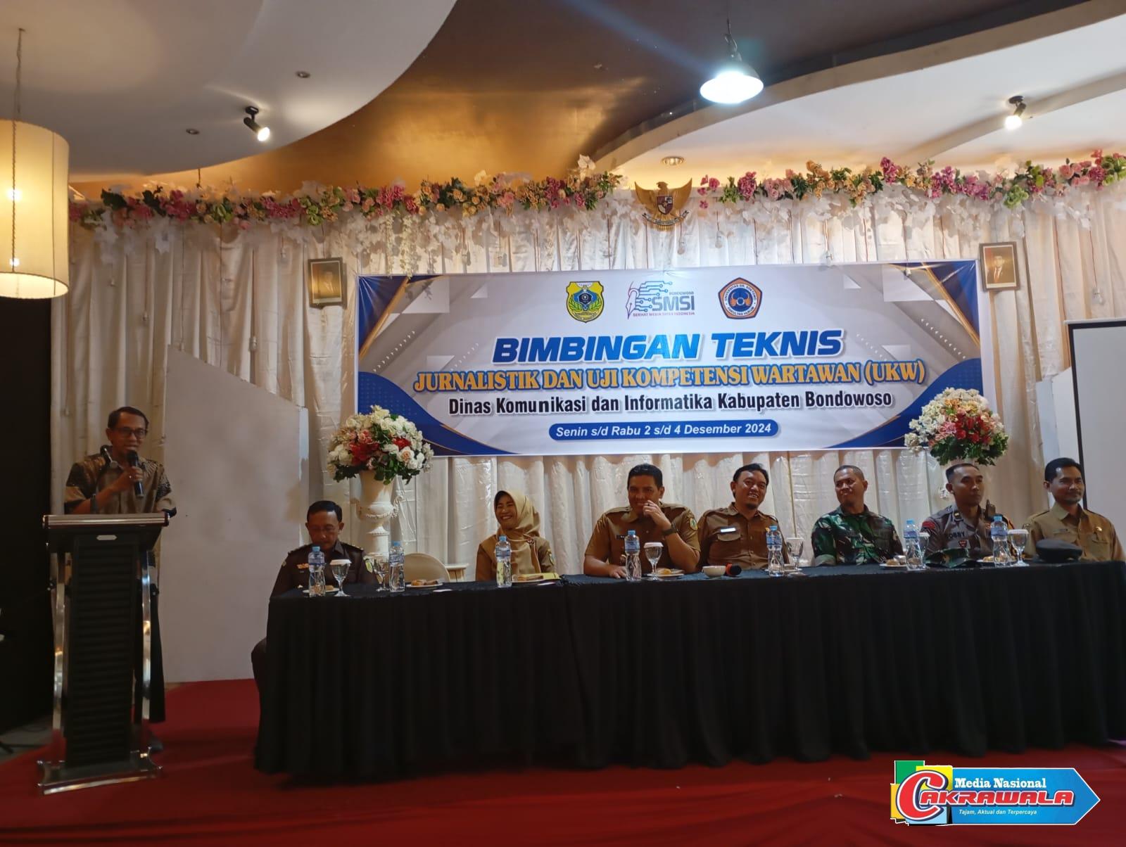 Bondowoso,MNCakrawala-Diskominfo bekerjasama dengan SMSI Bondowoso gelar Pelatihan Jurnalis dan Uji Kompetensi Wartawan (UKW) Jenjang Muda dengan Lembaga UKW Unitomo Surabaya di Cafe n Resto Hotel Ijen View, mulai senin hingga Rabu, (2-4/12/2024).