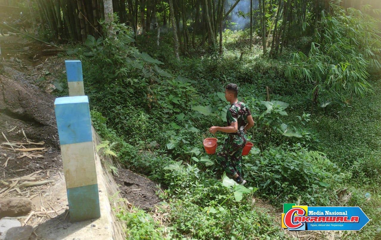 Bondowoso,Cakrawala– Meski mesin penyedot air rusak, namun pekerjaan pengecoran gapura di Desa Gunosari Kecamatan Tlogosari Kabupaten Bondowoso itu tetap dilaksanakan oleh Satgas TMMD Reguler ke-123 Kodim 0822 Bondowoso Sendiri. Dalam mengatasi hal itu, personel Satgas TMMD bahu membahu mengangkut air guna keperluan adukan semen dan mengisi air pendingin mesin molen.