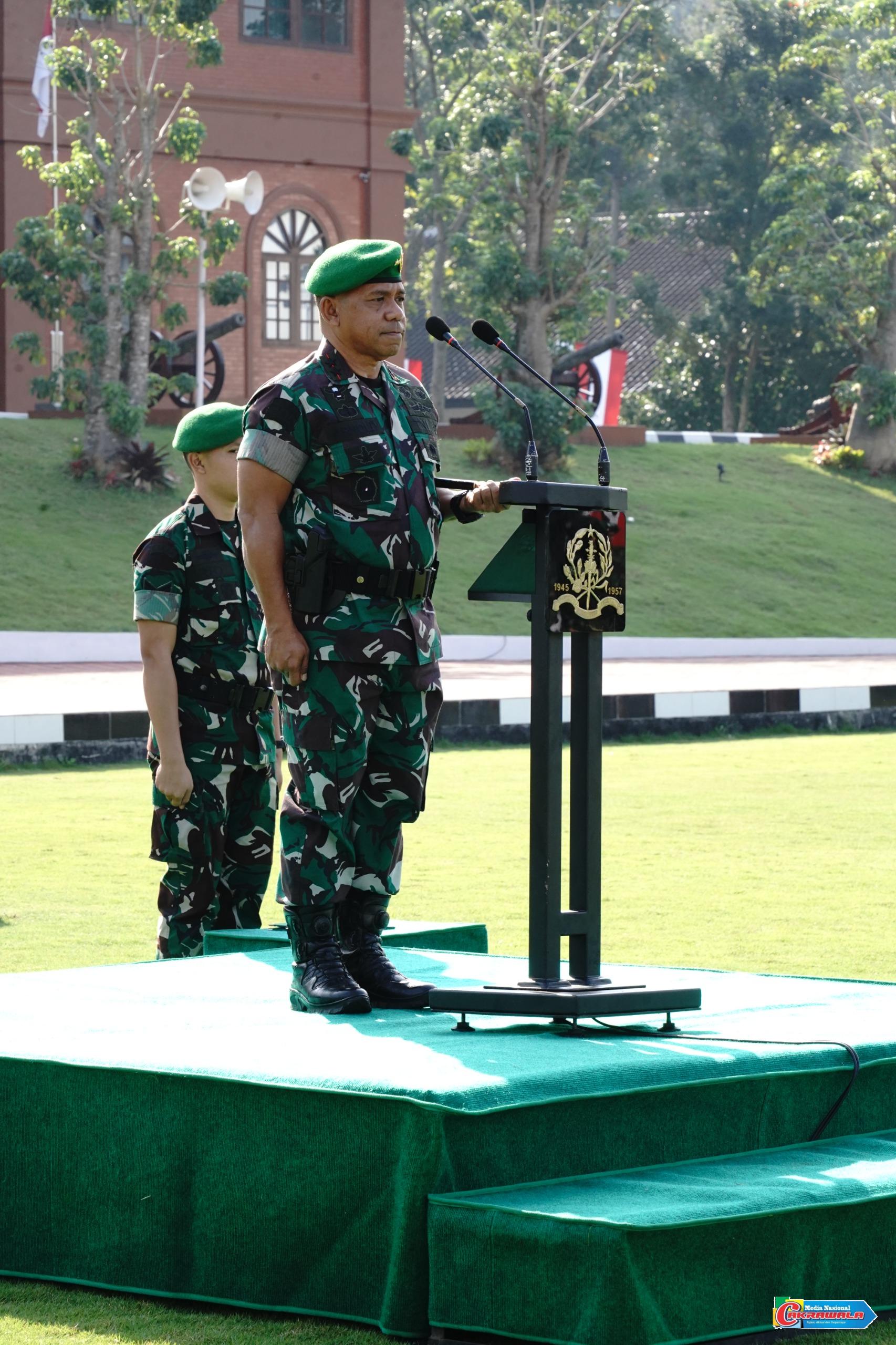 Magelang,Cakrawala– 11 Juli 2025 – Gubernur Akademi Militer, Mayjen TNI Arnold A.P. Ritiauw, memimpin upacara kenaikan tingkat dan pangkat Taruna Akademi Militer tingkat I/Koptar dan II/Sertar Tahun Pendidikan 2024/2025 di Lapangan Pancasila Akademi Militer. Dalam kesempatan tersebut, Mayjen TNI Arnold bertindak selaku Inspektur Upacara. Hadir pula Wakil Gubernur Akmil, para Pejabat Distribusi Akmil beserta istri, Ketua Persit Kartika Chandra Kirana Cabang BS Akmil dan pengurus, para Perwira, Dosen/Gadik, Pelatih, Pengasuh, serta seluruh Taruna dan Taruni Akademi Militer.