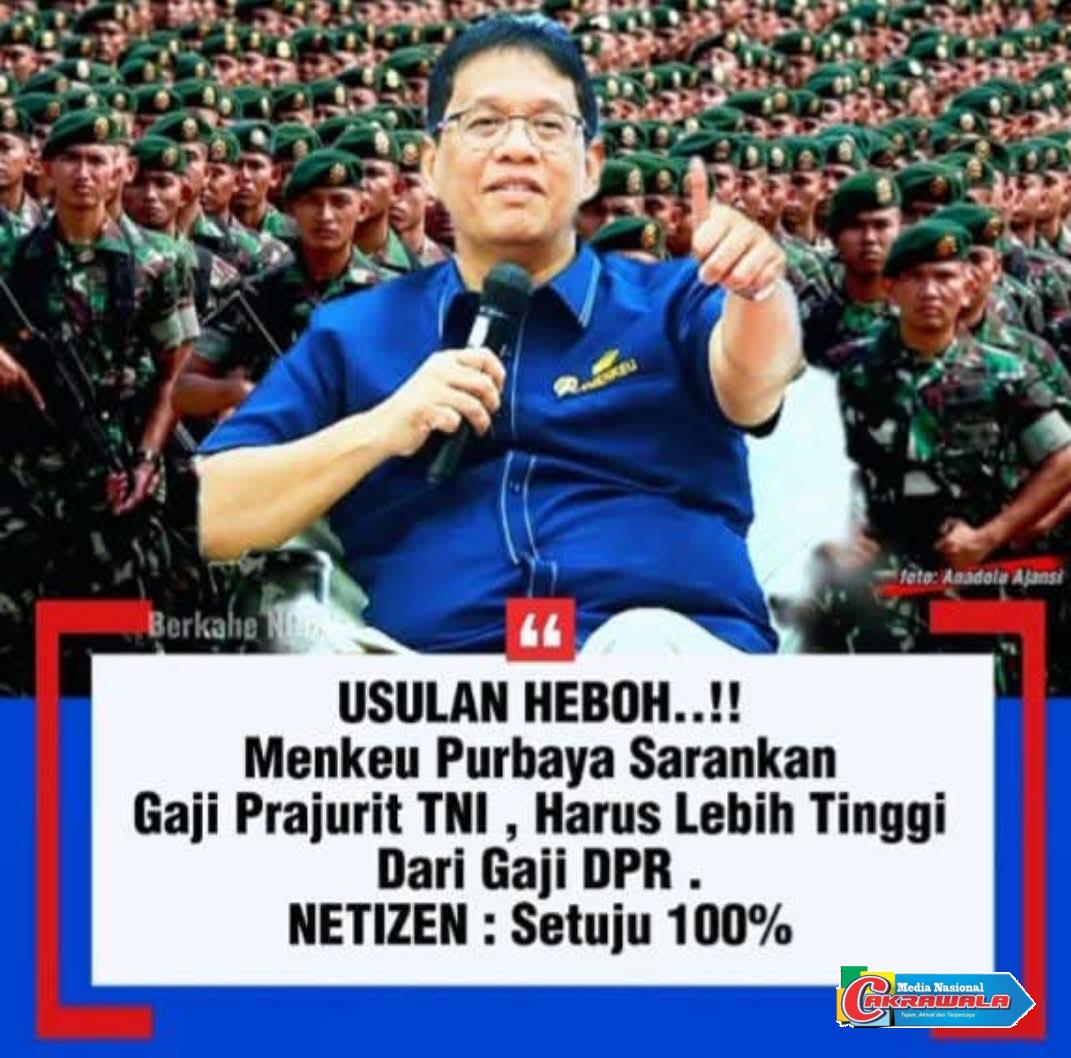 Jakarta,Cakrawala-Menkeu Purbaya kembali membuat gebrakan besar yang langsung menyita perhatian publik sekaligus memanaskan suasana di Senayan. Dalam laporannya kepada Presiden Prabowo, ia menyampaikan usulan yang tak tanggung-tanggung: gaji prajurit TNI harus lebih tinggi dibanding anggota DPR.