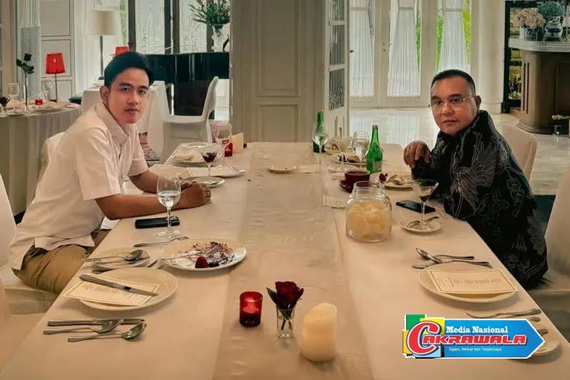 Dalam foto yang diunggah, Gibran terlihat duduk di meja makan panjang bersama Dasco yang juga Ketua Harian DPP Partai Gerindra ini.