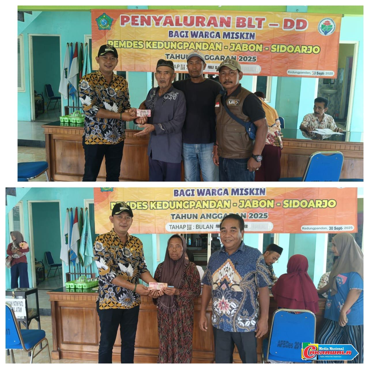 Sidoarjo,MN Cakrawala– Pemerintah desa Kedungpandan melaksanakan kegiatan pembagian Bantuan Langsung Tunai Dana Desa tahap tiga (BLT-DD Juli, Agustus, September) kepada warga masyarakat kurang mampu sebanyak 30 KPM bertempat di Balai Desa Kedungpandan, Selasa 30/09/2025.