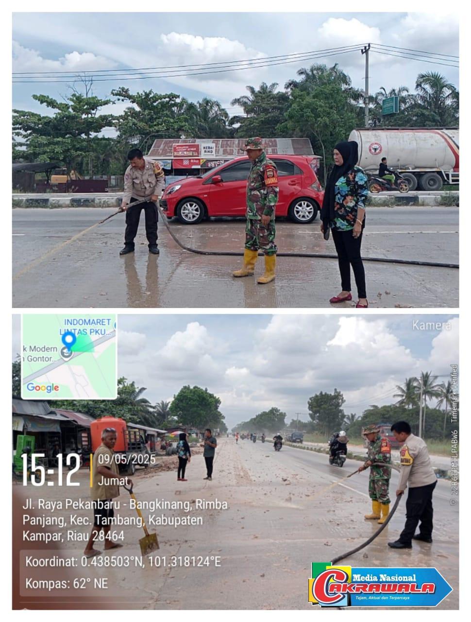 Pemerhati lingkungan Lassie Herawati, yang juga istri Ketua RT 002 RW 001 serta Bendahara B2P3 dan Ketua Forum Visi Rakyat Nasional (FVRN) Kampar, bersama Babinsa Jimmy dan Babinkamtibmas Pebri dari Polsek Tambang, turun langsung ke lokasi. Ketiganya bahkan ikut menyiram jalan untuk mengurangi debu dan mencegah kecelakaan, sebagai bentuk kepedulian terhadap warga.