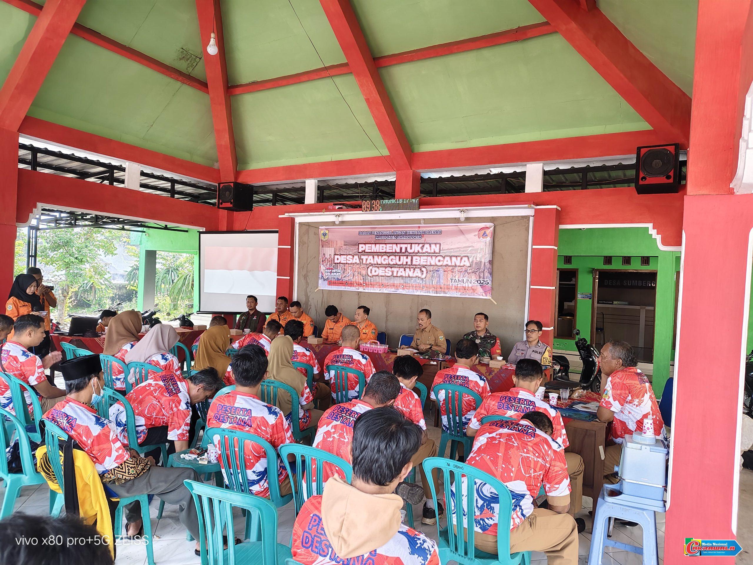 Kegiatan ini diinisiasi oleh Badan Penanggulangan Bencana Daerah (BPBD) Kabupaten Bondowoso dan melibatkan berbagai unsur seperti Kasi Trantib Kecamatan Sumber Wringin, Kepala Desa Sumber Gading, Babinsa, Bhabinkamtibmas, serta sekitar 30 peserta dari masyarakat setempat. Pembentukan DESTAN bertujuan untuk membangun kemandirian desa dalam menghadapi dan menanggulangi bencana secara cepat dan efektif.
